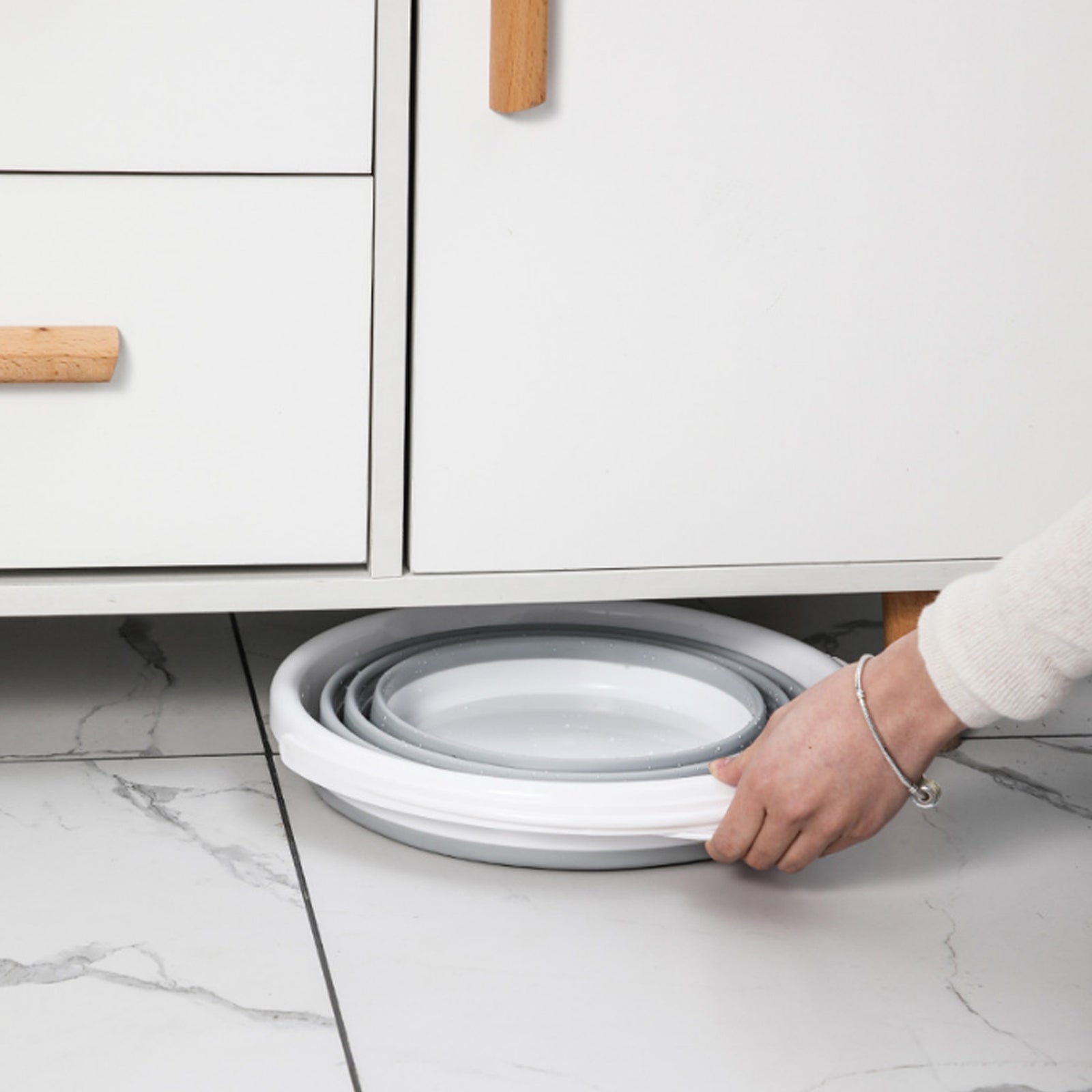 Conclusion: The Foldable Bucket in Grey/White is a versatile and convenient option for anyone in need of a reliable bucket for outdoor activities. Its collapsible design makes it easy to store and transport, while its durable materials ensure long-lasting use. With a large 10L capacity, this bucket is ideal for carrying water, fish, or other items.