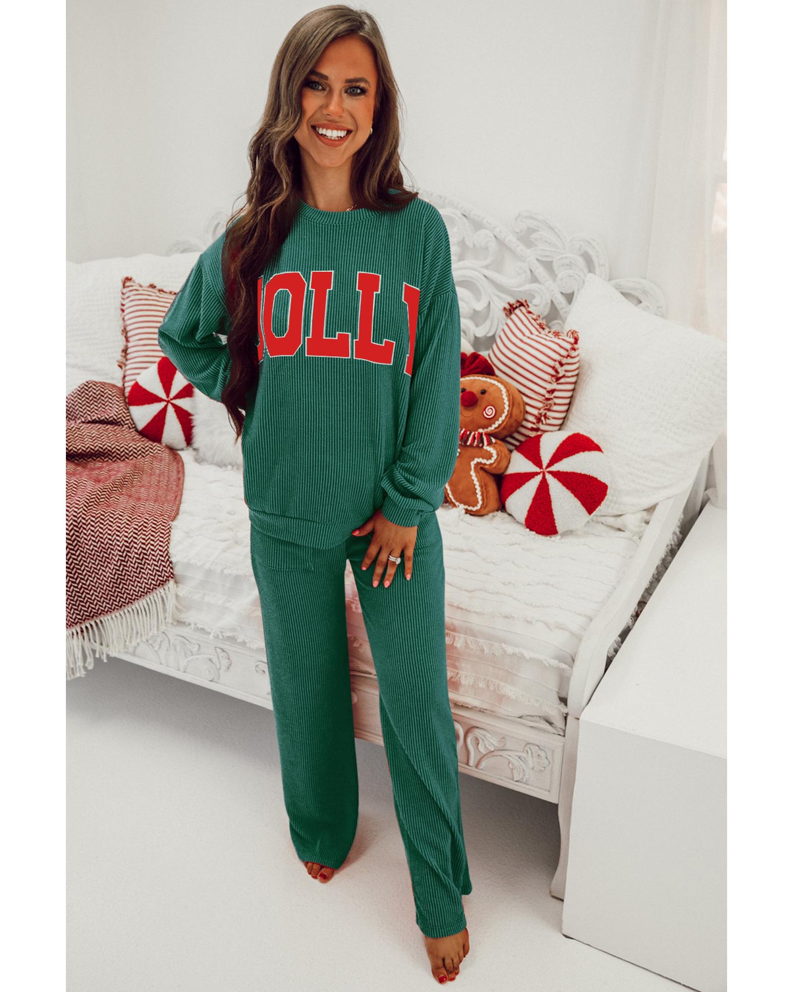 Evergreen JOLLY Corded Long Sleeve Top and Pockets Pants Set - XL