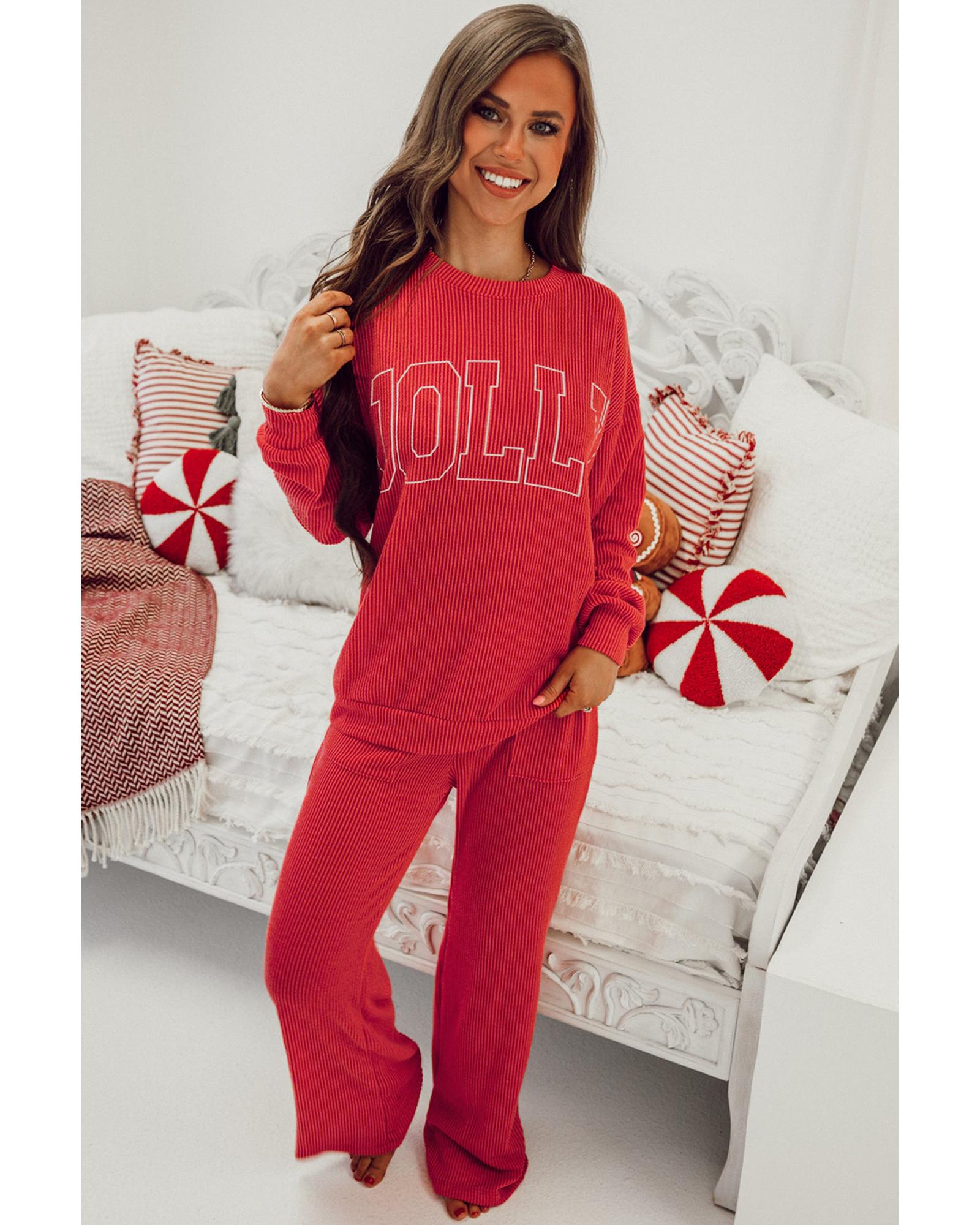 Fiery Red JOLLY Corded Long Sleeve Top and Pockets Pants Set - M