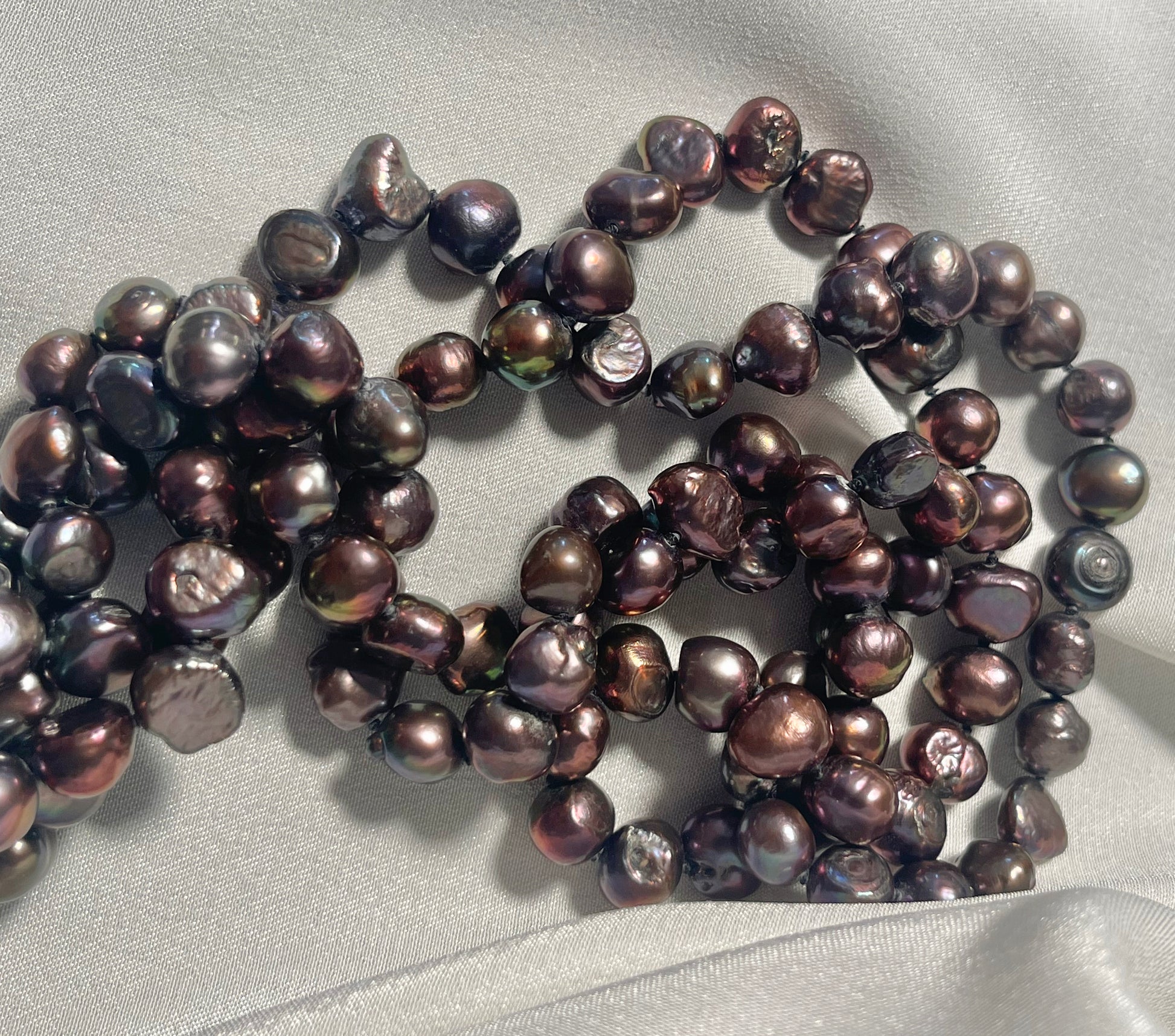 The varying tones of Peacock pearls gives a lustrous shine and different colours depending on the light!