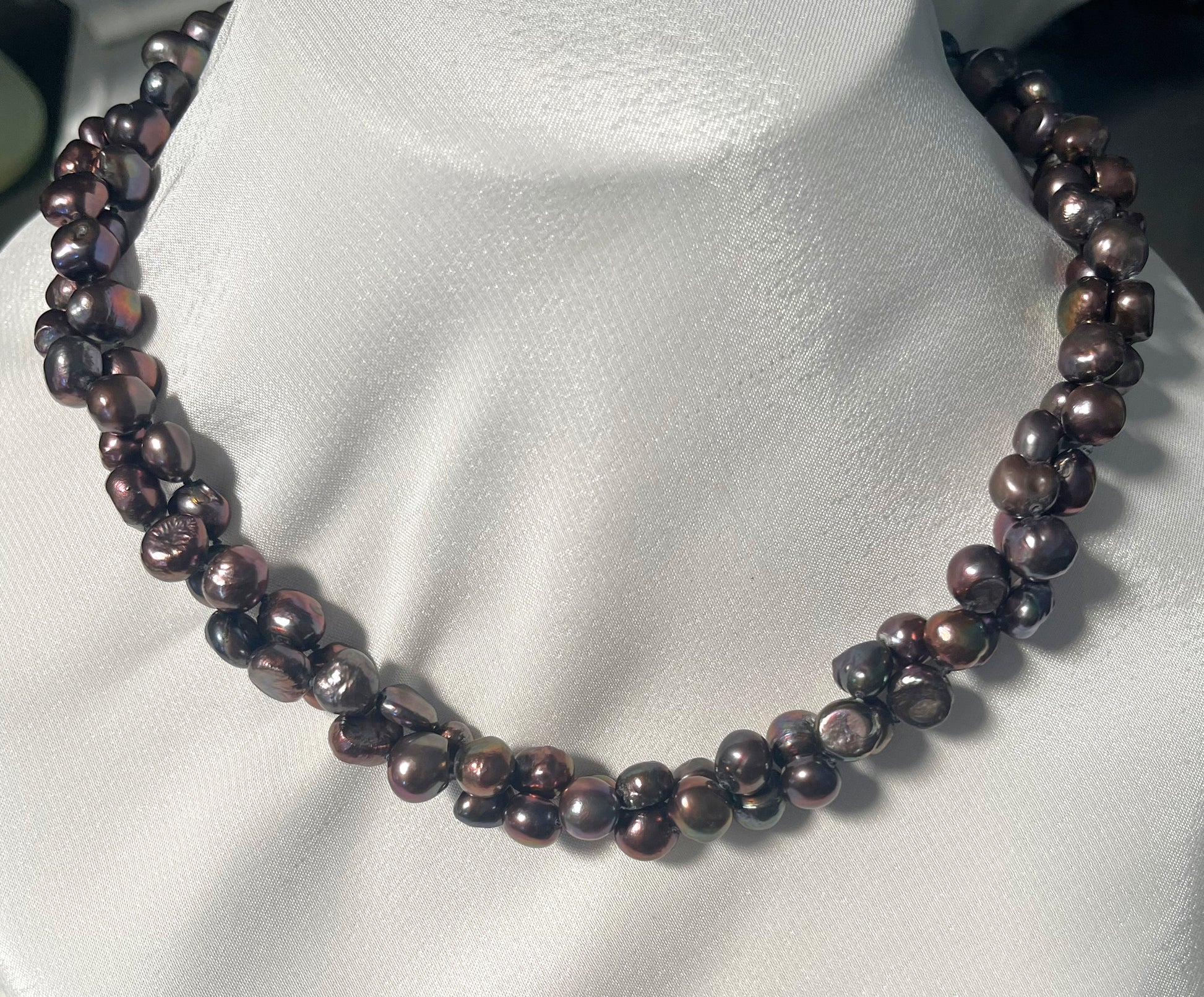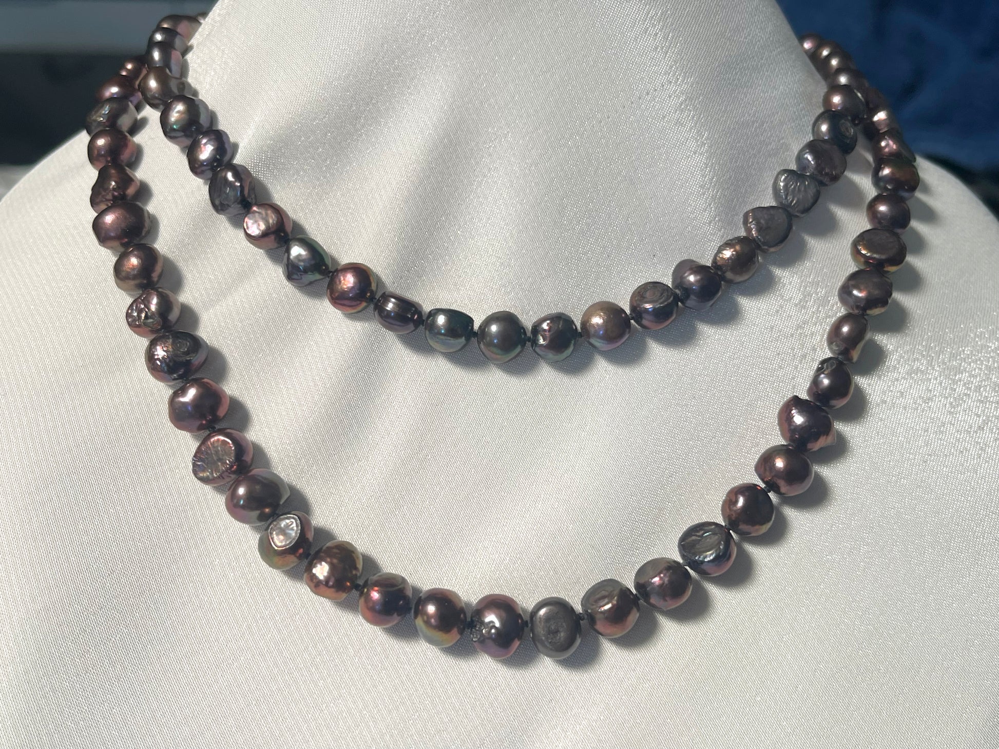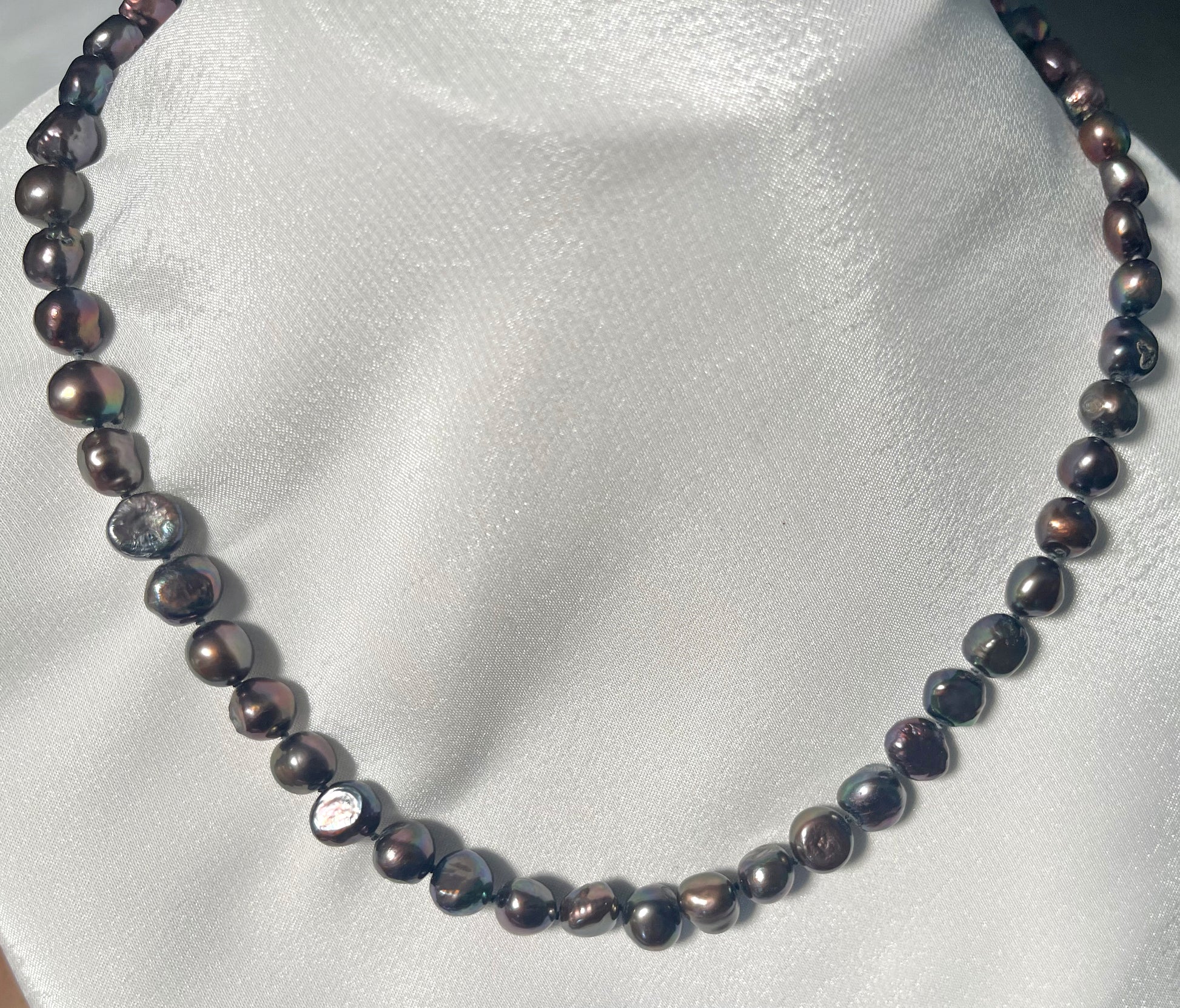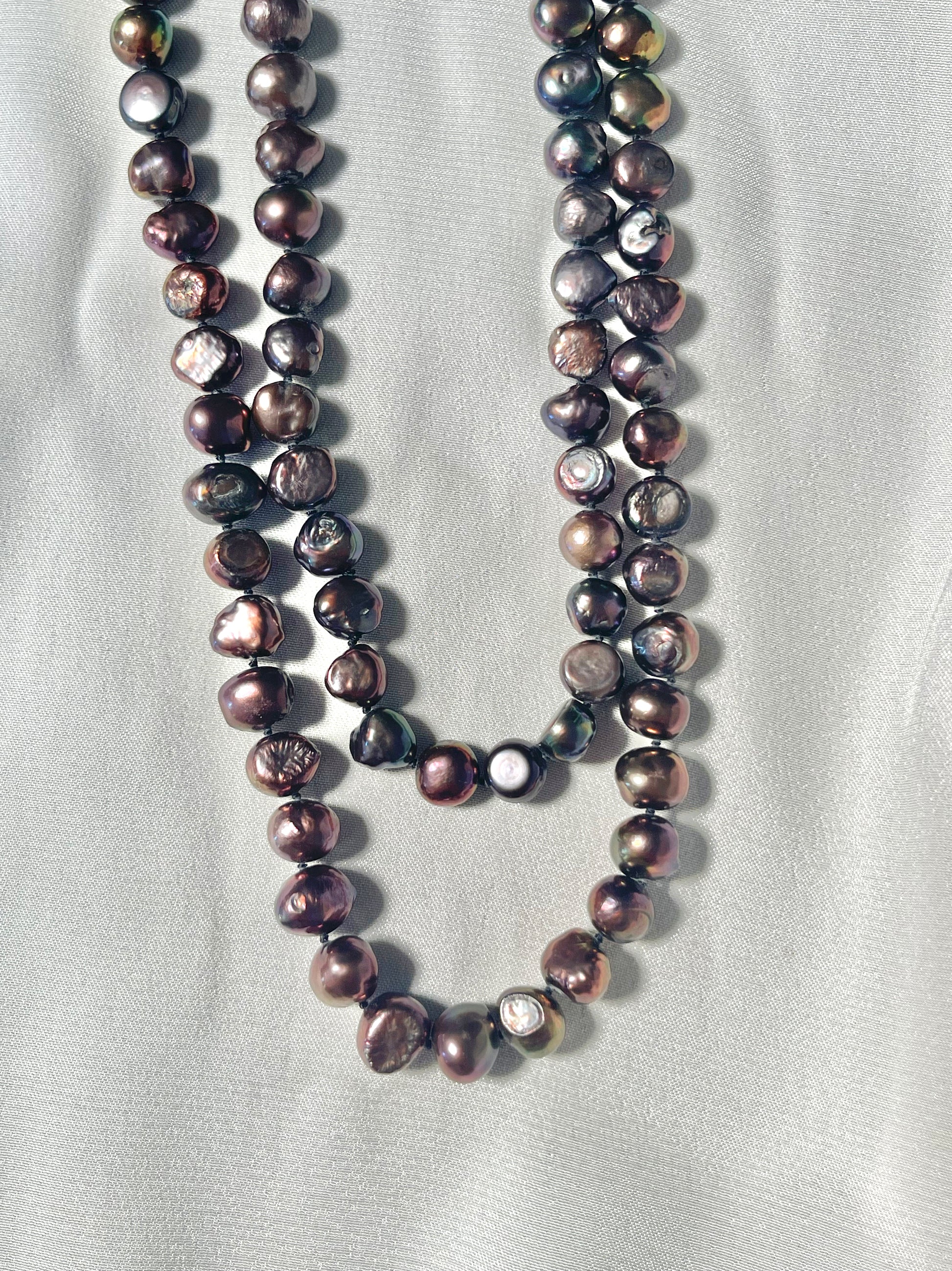 Peacock Freshwater Pearls Necklace - 4 ways to wear - iridescent 7mm-9mm pearls