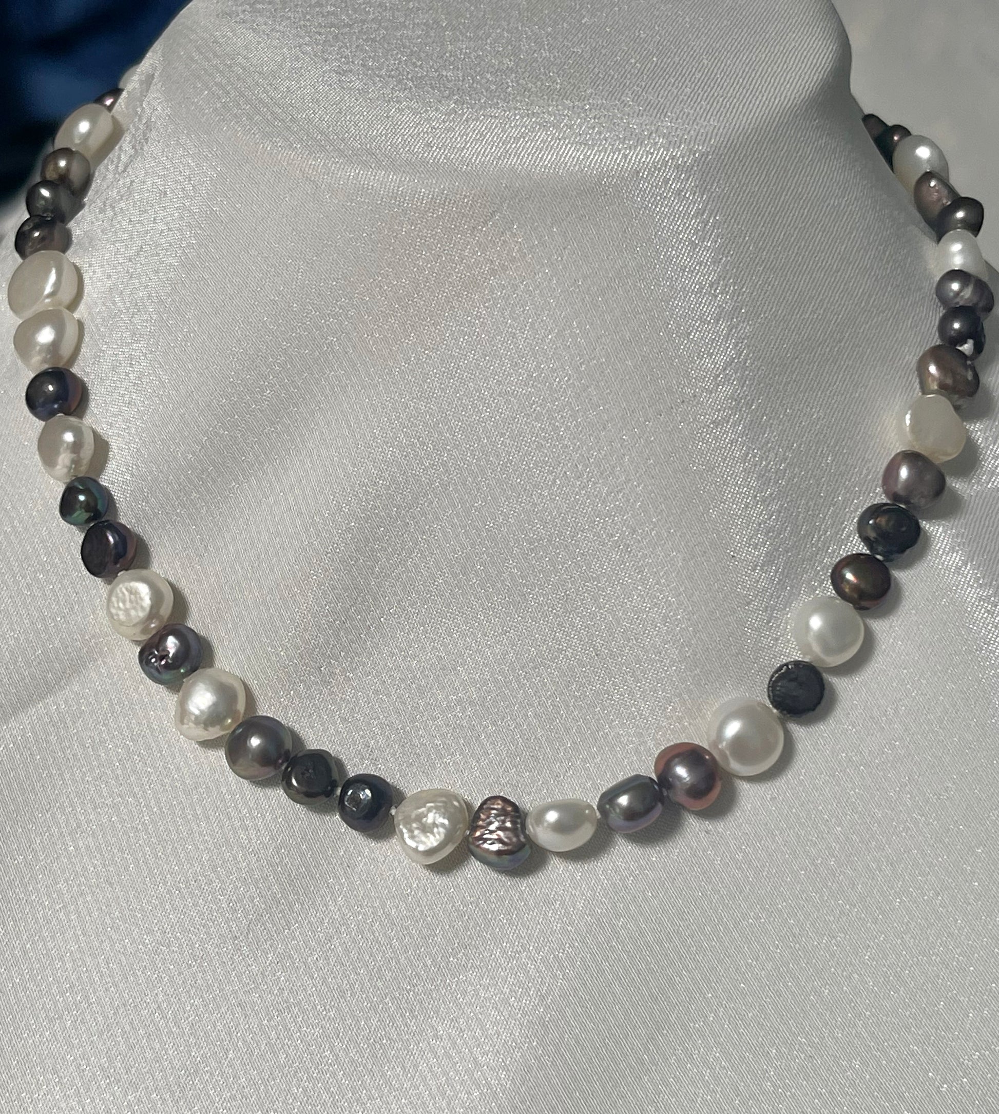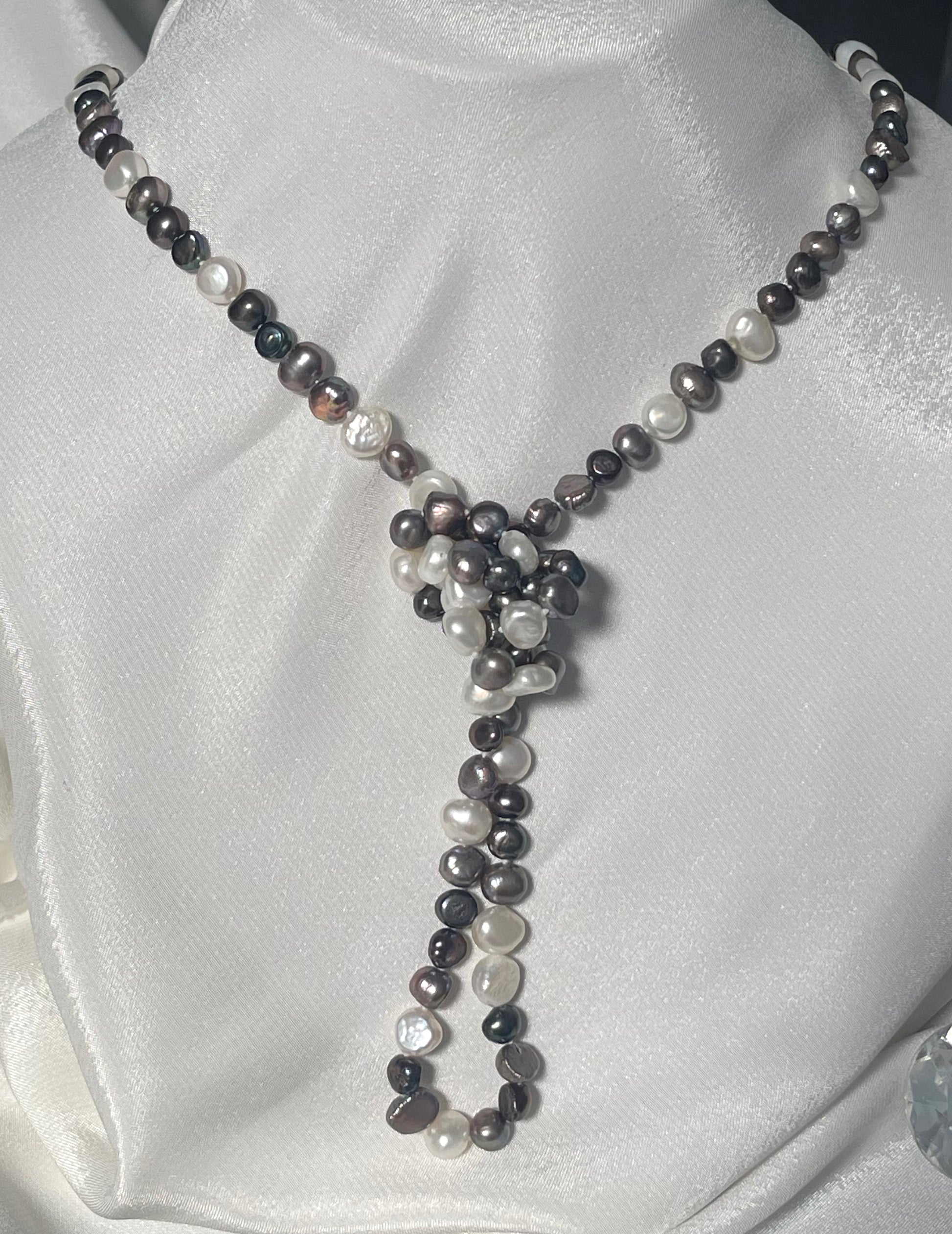 Grey Charcoal Peacock White Freshwater Pearls Necklace - 4 ways to wear
