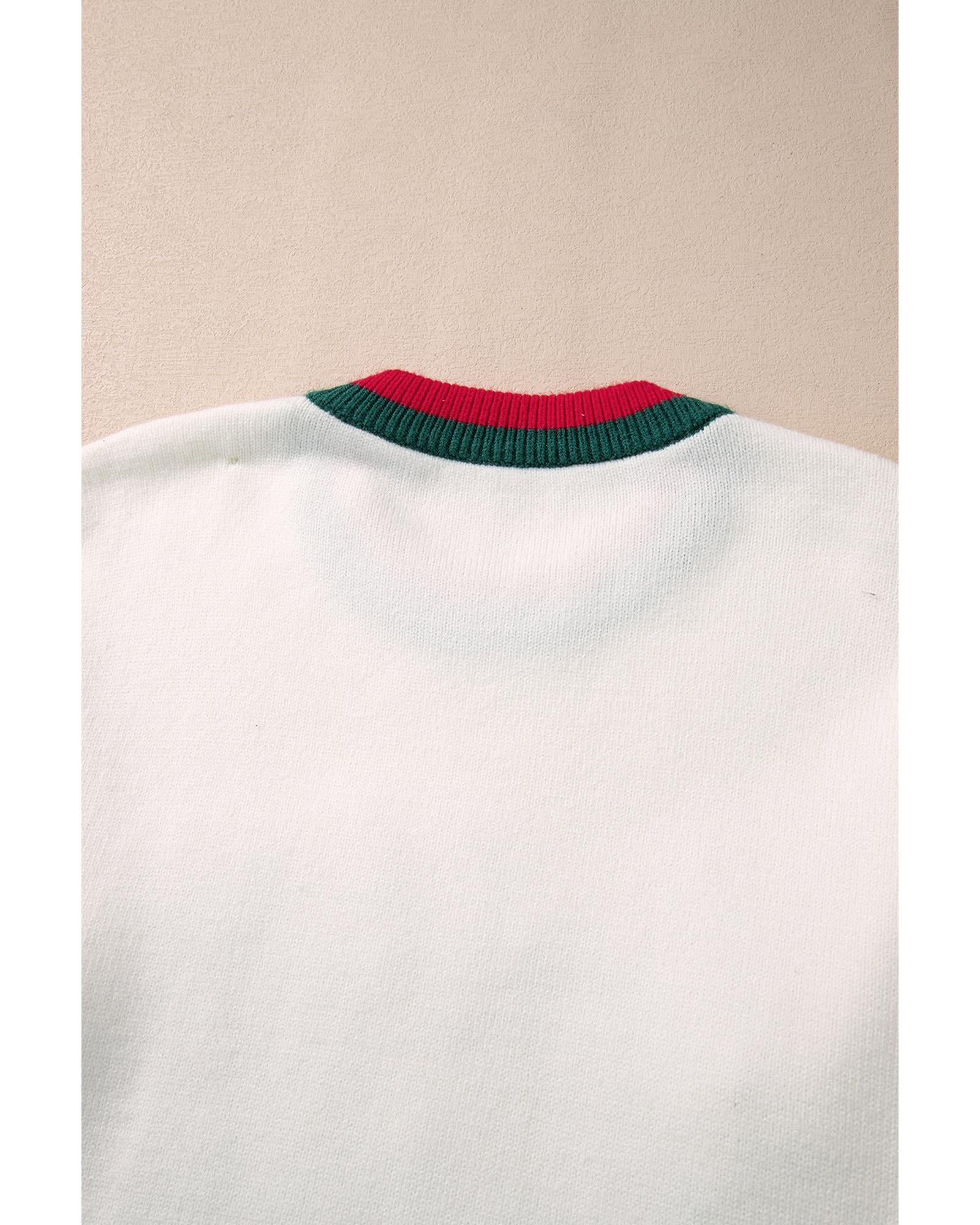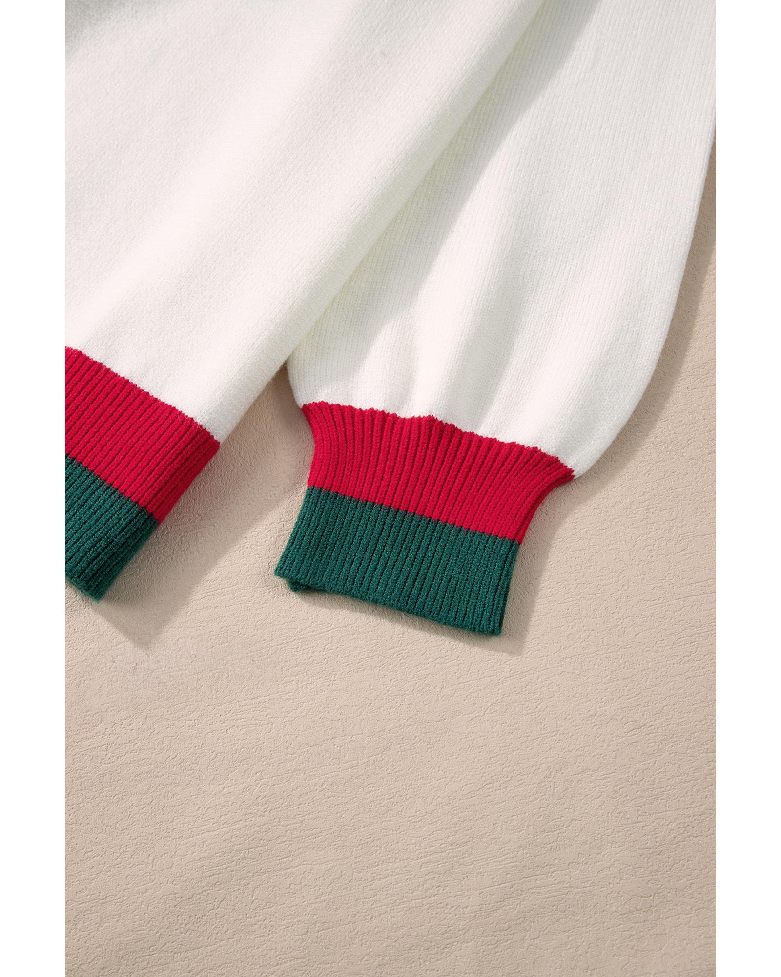 - White Tinsel Holly Jolly Pattern Colorblock Edge Drop Shoulder Plus Size Sweater